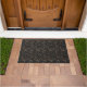 Rustikal dunkelbraune Türmatte mit einem gearbeiteten Imitat Lederhintergrund.