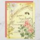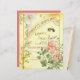 Armant's Parfüms Vintage Werbung mit gelbem Hintergrund. Blume aus rosa Fahne, Grünpflanzen aus Elfenbein und Pflanze, weiße Farbtupfer.