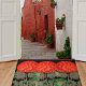 Erinnern Sie sich an die Tage, als Türme mit solch kühnen und lebhaften Blumenmotiven prahlten.?Es bringt mich zurück zu einer einfacheren Zeit, in der jedes Detail unserer Zuhause sorgfältig geheilt wurde, um unseren persönlichen Stil widerzuspiegeln. Ah, ich erinnere mich an den Anblick von drei wunderschönen rot-orangen Geranien, die anmutig vor einem schwarzen Hintergrund stehend sind. Das bringt mich zurück zu einer einfacheren Zeit. Ah, diese warmen Sommertage mit der mediterranen Brise, die durch die Tür weht. ...