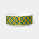 Holen Sie Ihrem Hund diese großartige Keramik Pet Bowl mit diesem Muster von stilisierten grünen Blume auf Senf grün gelb. Eine Blume aus Südfrankreich. Stellen Sie sich die Stadt Toulouse vor mit diesen coolen Vintagen Farben.