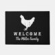 Vintage Hähnchenfarm Tier Custom Begrüßung Tür mit Familiennamen oder Adresse. Individuelle Türmatte für Familien, Geschäftsleute, Metzgerei, Firma, Bar, Pub, Laden, Geschäft, Büroangestellte, Jungvermählte, Mr und Mrs Pärchen, Metzger, Hof, Koch, Koch, Fleischliebhaber etc. Fügen Sie Ihre eigene Begrüßungsbotschaft, Hausnummer, Familienname, Monogramm, Nachname oder lustiges Zitat. Coole Geschenkidee für neue Zuhause, Umsiedlung oder Hauswärmung. Graue Typografie-Vorlage mit schwarzer Hintergrundfarbe. Persönliches Türschild mit rustikalem Design. Erstellen Sie Ihre eigene lustige Eintrittsmatte / Teppich für Eingangstür, Einfahrt oder Halle. Individuell gestaltbare Wohngestaltung / Dekoration für Ihr Haus oder Ihre Einrichtung. Trendy Wohngestaltung Geschenkideen. Erhältlich in kleinen und großen Größen.