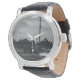 Uhr, Vintage Männeruhr mit schwarzem Lederarmband
