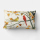 Kissen aus Lumbar in Vintager japanischer Wasserfarbe eines Kardinals, männlich und weiblich, auf einem Zweig von Herbstblättern mit Beeren, digital verbessert