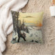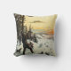 Dieses dekorative Kissen kennzeichnet Vintage Grafik eines Jägers und seines Hundes am Sonnenaufgang, der es ein großes Geschenk für Sportsmen oder Gewehrsammler macht!