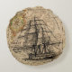 Vintage Kunst mit dem zeichn eines alten Weltschiffs mit Segel auf einer Karte von Europa und Kompass von Nord-Südost und West Richtungen.