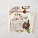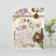Vintages Lila Blumenkollage Scrapbook Paper. Dieses Design ist eine Collage aus Elfenbein lila Blüte, Spitze, Schmetterling, Briefmarke, Banner, Geschenketikett, Handschrift, verzierte Muster und Textur.