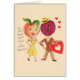 Retro / Vintag Valentinstag Grußkarte. Niedliches Pfirsich- und Pflaumenpaar! Ich bin glücklich, denn du bist ein Pfirsichwald!