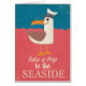 niedlicher Cartoon Seebadeposter drucken. Seagull Reiseplakat.