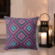 Fügen Sie Ihrem Zuhause mit diesem hübschen Retro-Kissen mit Akzent im Retro-Quilt-Muster eine boho-schicke Fackel hinzu. Basierend auf dem Design eines Vintagen Amish Patchwork-Quilts, enthält es ein komplettes Diamantmuster in verschiedenen Tönen von lila, rosa, blau und grün. Farbenfroh und auffällig! Dieses Kissen aus der Antike mit frischem zeitgenössischem, grafischem Flair ergänzt das rustikale Landhaus und den modernen Dekorstil. Ein elegantes, stilvolles Update, das die traditionelle amerikanische Volkskunst würdigt.