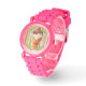 Uhr, Kinderuhr aus Edelstahluhr mit lila Lederarmband
