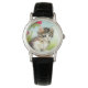 Vintages Weiß und Brown Kitten mit Blume Armbanduhr