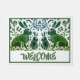 Meine Vintage Kaninchenkunst mit Blätterblättern, Blume und sogar einer kleinen Schnecke lädt Ihre Besucher mit smaragdgrünen Farbtönen ein. "WELCOME" in einem modernen Drehbuch ist auch in grün. Schön, einfach und elegant.