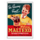 Wieder hergestelltes und digital erhöhtes Vintages Werbungsplakat, das einen lächelnden Jungen hält einen Teelöffel und ein Glas von Maltexo mit Dorschleberöl zeigt. Er trägt einen gelben Jersey, ein weißes Shirt und rote Krawatte. Unvollkommenheiten entfernt. Farben korrigiert.