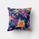 Dieses kühne und helle Kissen macht definitiv eine Aussage! Rose in Aquarelltönen in violetten, lila und Mandarine-Orangen-Form-Bouquet-Haufen, zusammen mit mehrfarbigen Blätter und Knospen. Die Bilder werden auf einem marineblauen Hintergrund platziert, der die Blumenfarben ergänzt. Beide Seiten haben das gleiche Bild. Schön und hell! * Grafikdesign von www.CreatetheCut.com.