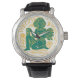 Jungfrau-Zeichen des Zodiaks in grün und weiß auf einer Armbanduhr.