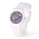 Uhr, Kinderuhr aus Edelstahluhr mit lila Lederarmband