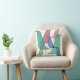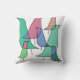 Dieses Kissen hat ein geometrisches Design von sich überlappenden Vögeln in Retrofarben. Woll verschiedene Farben? Nachricht.