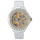 Vögel und Blüten in Gelb Armbanduhr