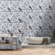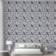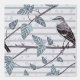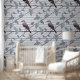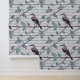 Diese Tapete zeigt ein Vogelmuster, das am Zweig eines Baumes stehend ist.