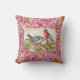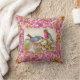 Blumenkissen in den Schatten der Rose, rosa n Gelbdruck mit Vintagem Bild von zwei Vögeln