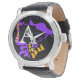 Uhr, Vintage Männeruhr mit schwarzem Lederarmband