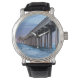 Uhr, Vintage Männeruhr mit schwarzem Lederarmband