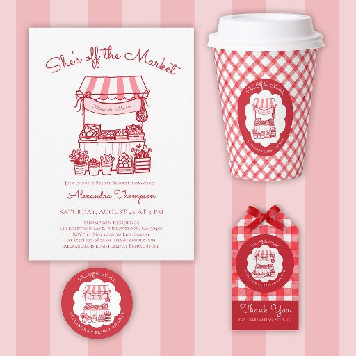 Off the Market Farmers Red Modern Bridal ShowerDesignt von Christine Ellis