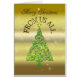 Eine schöne Goldeffektkarte Weihnachten. Ein abstrakter grüner Baum mit einem glänzenden Stern.