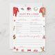 Eine festliche Spielkarte, auf der die Gäste ihre Vorhersagen und Ratschläge für das Baby teilen können. Mit Aquarell Weihnachtskleider und einer Schneeflocke zurück in modernem Design.
