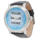 Diese benutzerdefinierte Uhr-Vorlage ist ein einfaches und elegantes Zeitstück-Design mit dünnen weißen Zahlen, die die Stunde angeben. Um dieses Produkt anzupassen, laden Sie Ihr eigenes Hintergrundbild oder Foto wie oben gezeigt hoch.