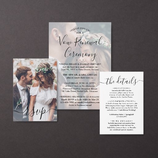 Vow Renewal Elegantes Foto Overlay Sequel Wedding Einladung