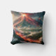 Ein majestätischer Vulkanausbruch dominiert die Szene, mit einer pulsierenden roten Lava, die die Hänge hinabfließt und einem Rauchwolken, der in den Himmel strömt. Die umliegende Landschaft ist von üppiger Vegetation geprägt und steht im Kontrast zu den heftigen Ausbrüchen