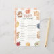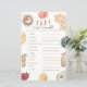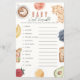This cute "baby brunch" girl baby word scramble game card features a cream background with brunch foods such as waffles, coffee, croissant, avocado, orange, bananas, egg, blueberries, and strawberry . The reverse side features a white background with gingham check pattern in orange. Personalize it for your needs. You can find matching products at my store.