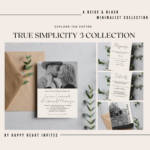 Save the Date zeichnet sich das Ganze durch Charme und Einfachheit aus, wobei das Foto der Braut und des Bräutigams in einem Bogen gestaltet wurde. Koordiniert mit der Sammlung True Simplicity 3 Beige & Black. Bitte kontaktieren Sie uns, wenn Sie Hilfe bei der Anpassung dieser Einladung wünschen.