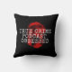 Ein Kissen für echte Kriminalpodcast-Liebhaber überall, mit einem blutigen Fingerabdruck mit Schreibmaschine Stil "True Crime Podcast Obsesssed" Text.