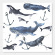 Aquarellhandgemalte Blauwale, Narwal, Orca und Spermawale auf weißem Hintergrund. | © und ® Bigstock® - Alle Rechte vorbehalten.