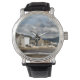 Uhr, Vintage Männeruhr mit schwarzem Lederarmband