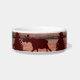 Waldmoose Wolf Wilderness Berghütte Rustikale Dekoration mit einem sich wiederholenden Muster von Elch, Wölfe heulen, und Kiefern in einem maronroten Silhouette Design. Der Hintergrund ist ein rustikales Holzbrett, wie die Seite einer Kabine.