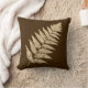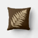 Baumfarn-Silhouette-Muster werfen Kissen, die aus Vintagen botanischen Abbildungen, digital gerendert und farbig, in dunkelschokoladenbraun und hellbeige angepasst sind