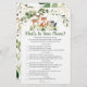 Diese eleganten "What's In Your Phone Cards" sind eine tolle Möglichkeit, um den Spaß an Ihrer Baby-Dusche zu entfachen und garantiert einen riesigen Hit zu werden! Sie können sie einfach während der Baby-Dusche weitergeben, wo es Spaß macht, durch ihr Handy zu gehen und die Artikel, die sie von der Liste haben, abzusehen. Die Person mit den meisten Punkten gewinnt! Das Design umfasst niedliche Waldtiere mit Blumengrün und Goldfolienakzenten.