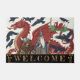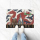 Wales Welcome Doormat mit moderner Kunst mit patriotischer walisischer Fahne zusammen mit einem Großen Roten Drachen, Zauberer Merlin, Raben und Vikingbär im Jugendstil. Original Winterweiße, lustige Hausmatte für jeden Anlass. Passen Sie den Text "Begrüßung" einfach an.