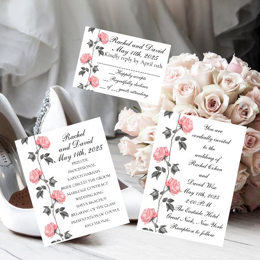 Inspiriert von den schönen Tapeten der 50er Jahre, wird dieses zarte, rosa-schwarze Design auf reinem Weiß eine atemberaubende Ergänzung zu Ihrer Retro-informierten Hochzeit sein.