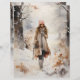 Doppelseitiges Scrapbook-Blatt mit Aquarellbildern einer Frau, die in einem Winterwald spaziert, um Ihnen zu helfen, Ihre saisonalen Handwerksprojekte zu erstellen. Perfekt für alle Arten von Papierkrafträdern von der Scrapbooking bis hin zur Junk Journaling.