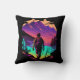 Ein cooles Retro-Design mit bunten Berglandschaften und einem Wanderer im Sonnenuntergang.