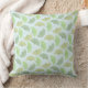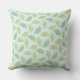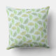 Ein pilllow, das eine grüne vektormusterpastellillustration des Ginkgo-Blätter in unterschiedlichen Schatten des Grüns auf einem hellblauen Hintergrund kennzeichnet.