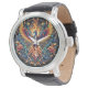 Machen Sie mit dieser beeindruckenden Armbanduhr eine kühne Aussage, die von einem lebhaften Phönix, der von Flammen aufsteigt, umgeben von komplexen Blumenmustern, geprägt ist. Die detaillierten Bilder auf der Armbanduhr präsentieren reiche Farbtöne in Orange, Gelb und Blau, die Erneuerung und Stärke symbolisieren. Dieses Uhrwerk kombiniert mit einem eleganten schwarzen Lederband und einem silberfarbenen Gehäuse und verbindet Artistik mit Eleganz. Diese Uhr ist perfekt für diejenigen, die mythische Designs und einzigartige Accessoires schätzen. Sie ist ein zeitloses Stück, das jedem Outfit eine Touch Power und Eleganz verleiht."