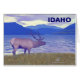 Blaue Töne dominieren in diesem Bild. Ein Elch, auch bekannt als Wapiti, am Ufer des Pend Oreille-Sees im Idaho-Panhandle. Es erscheint auch das Textlesen "IDAHO".