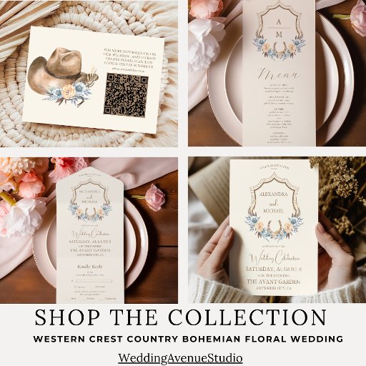 Wappen Western Land Bohemische Blumenhochzeit Einladung
