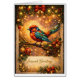 This elegant holiday greeting card features a richly detailed artistic bird illustration set in a warm, festive atmosphere. The front design blends painterly textures with cozy golden lighting, evoking a sense of joy, serenity, and seasonal warmth. Decorative holiday elements are carefully balanced to enhance the artwork without overpowering the natural beauty of the subject.