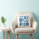 Warme Wünsche. Ein Kissen, das mit einigen Kleidungsstücken aus der Raute in blauen Tönen gestaltet wurde. Passen Sie es einfach mit Ihrem eigenen Text an.